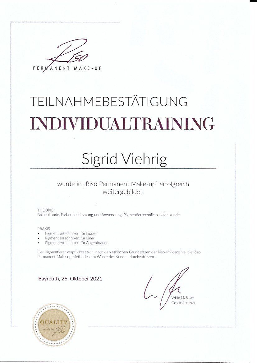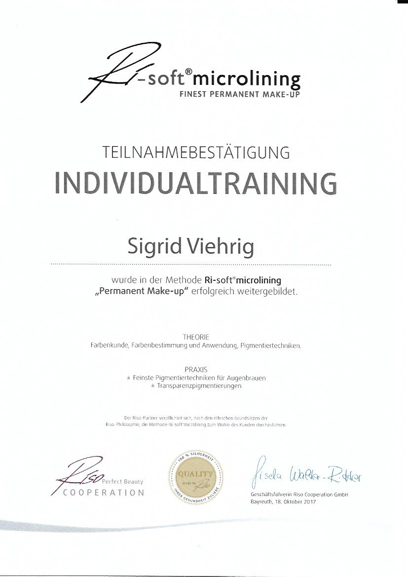 Meine Ausbildung zur Pigmentistin habe ich 2007 bei der Firma Riso® absolviert.